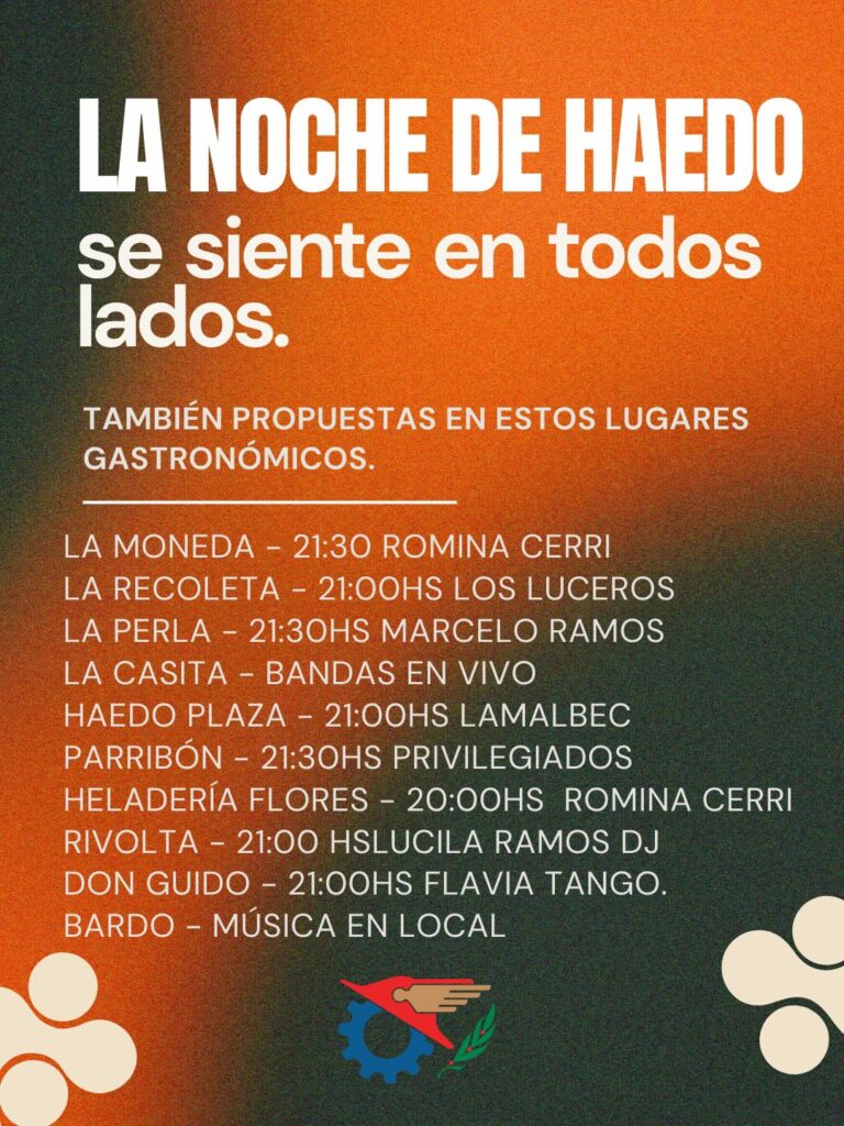 La ciudad volverá a celebrar La Noche de Haedo, una actividad organizada por la Cámara de Comercio Industria y Servicios para promover el encuentro comunitario, fortalecer el circuito cultural local y poner en valor los espacios públicos. El evento se desarrollará este viernes 6 de diciembre entre las 19 y las 23 horas, con entrada libre y gratuita.